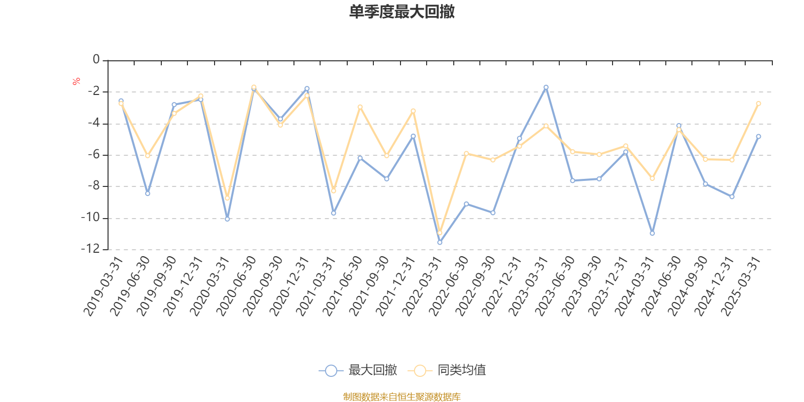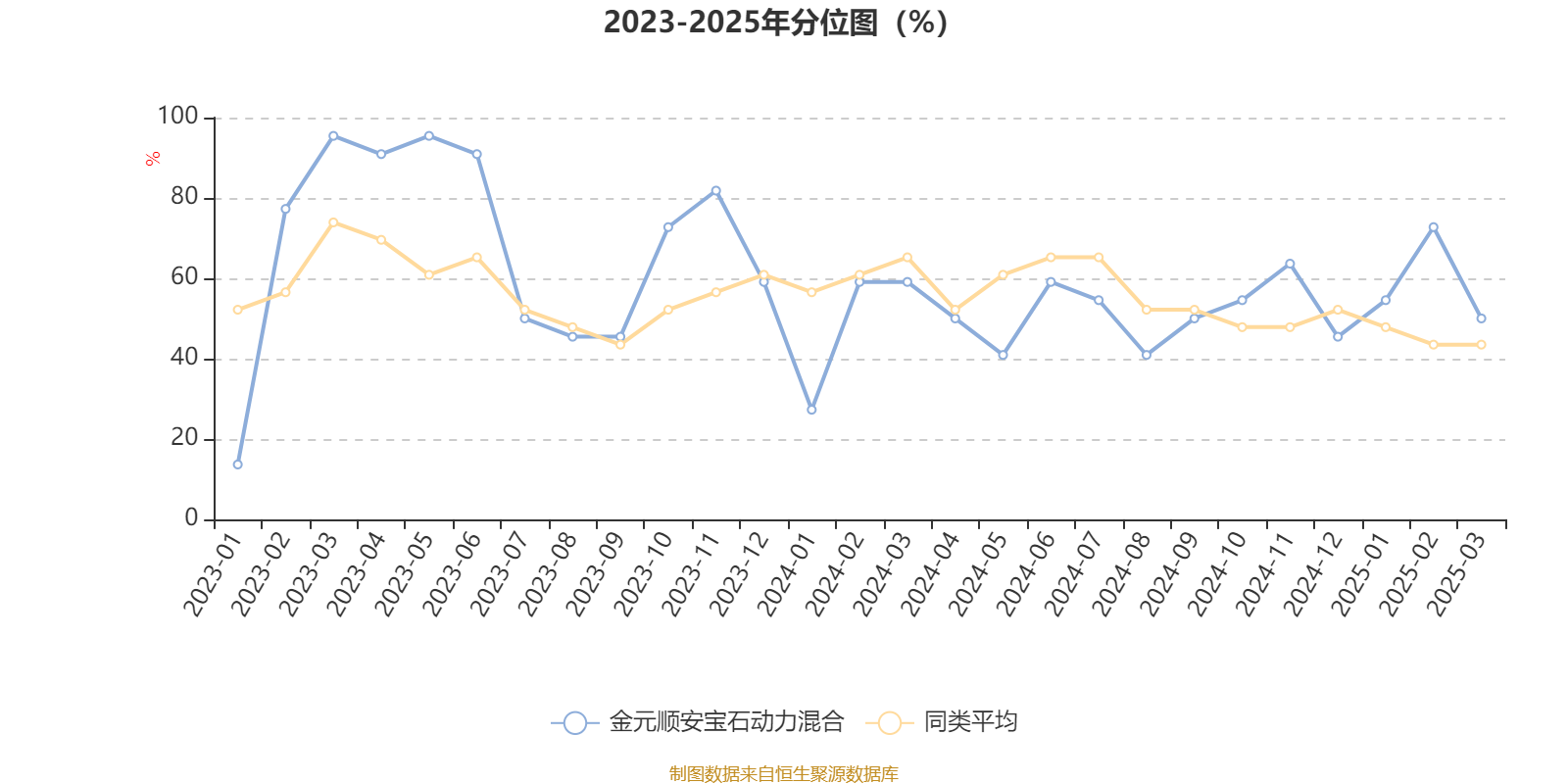通过所选区间该基金净值增长率分位图,可以观察该基金与同类基金业绩比较情况。图为坐标原点到区间内某时点的净值增长率在同类基金中的分位数。