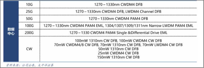 源杰科技的数据中心产品主要依靠高速电吸收调制激光器(EML)芯片拓展和大功率连续波(CW)激光器光源。简单理解,DFB适用于中距离传输,EML适用于长距离传输,VCSEL适用于短距离互联。其中EML激光器芯片是源杰冲击高端市场的“王牌”。EML芯片是实现800G、1.6T高速光模块的核心光源,拥有较高的技术壁垒,之前长期被日美企业垄断。源杰科技自研的100G EML芯片,可用于400G FR4和800G DR8光模块,是国内极少数实现EML芯片商业化落地的,目前已量产并交付给头部光模块厂商;