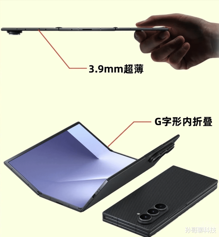 明明有华为三折叠珠玉在前,三星Galaxy Z TriFold却非常奇葩采用双内折方案,一整块屏幕只能采用内折叠。为了保证屏幕全部折上时还能使用,在手机背部中间又增加一块屏幕,和传统大折叠屏没有区别,完全失去三折叠应有的意义。
