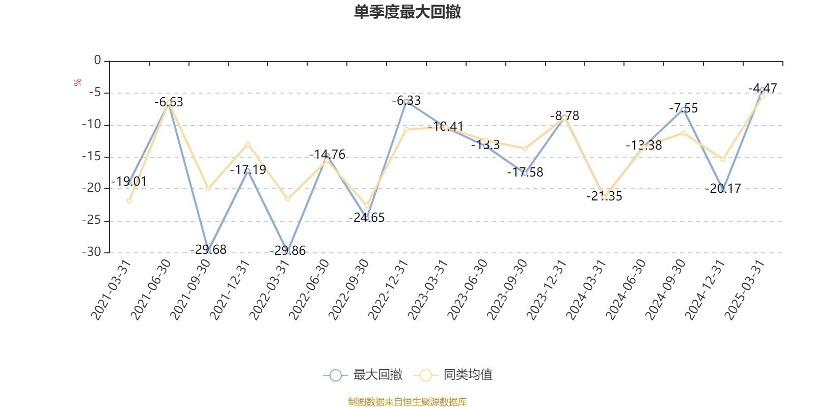 截至4月21日,基金近三年最大回撤为29%,同类可比基金排名42/45。单季度最大回撤出现在2022年一季度,为29.86%。